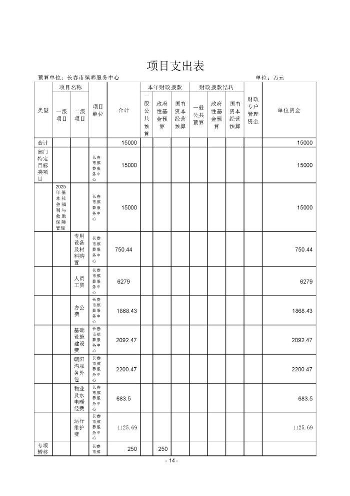 2025年长春市殡葬服务中心预算